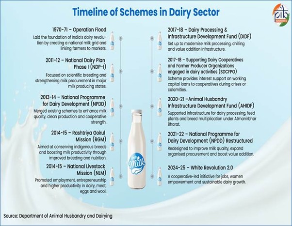 White Revolution 2.0, launched in 2024–25, aims to strengthen cooperatives and embed sustainability.