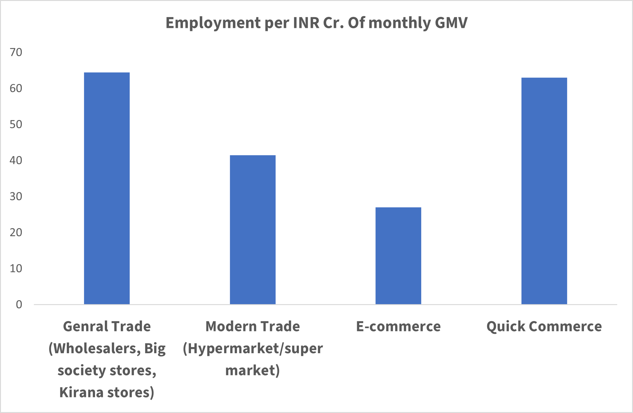 Quick commerce is driving a structural shift in employment by accelerating the move toward platform-based gig work. Many workers now take up flexible, on-demand roles, choosing part-time or full-time hours based on demand surges. Unlike centralized e-commerce hubs, quick commerce’s dark stores and micro-fulfillment centers spread jobs across urban and semi-urban areas, reducing labour market imbalances. Additionally, many delivery partners earn supplementary income by working across multiple gig platforms.