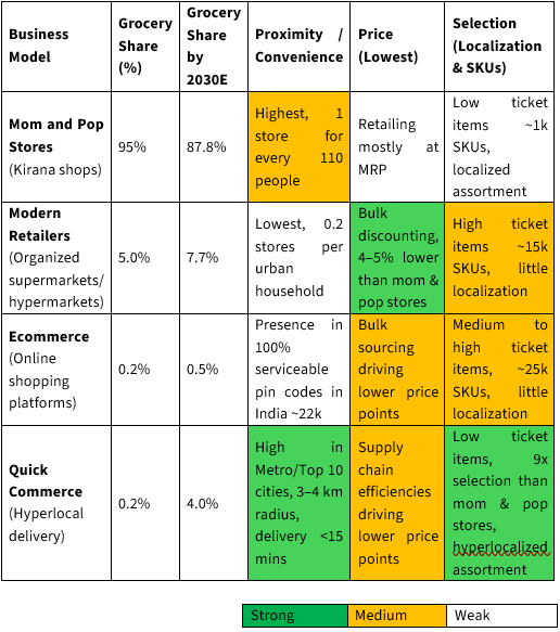 This shift highlights the gradual but significant movement of market share from traditional kirana stores to quick commerce platforms.
