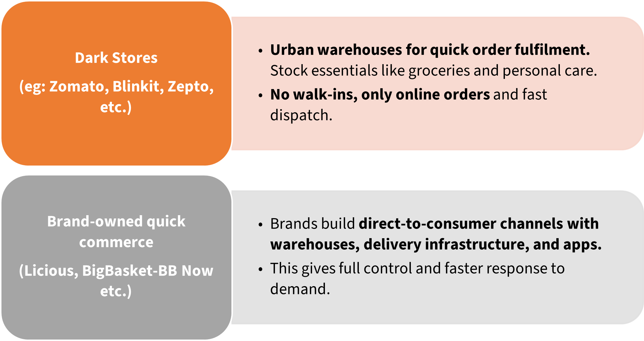 The quick commerce ecosystem operates through distinct business models, each tailored to meet the demand & promise of seamless service#: