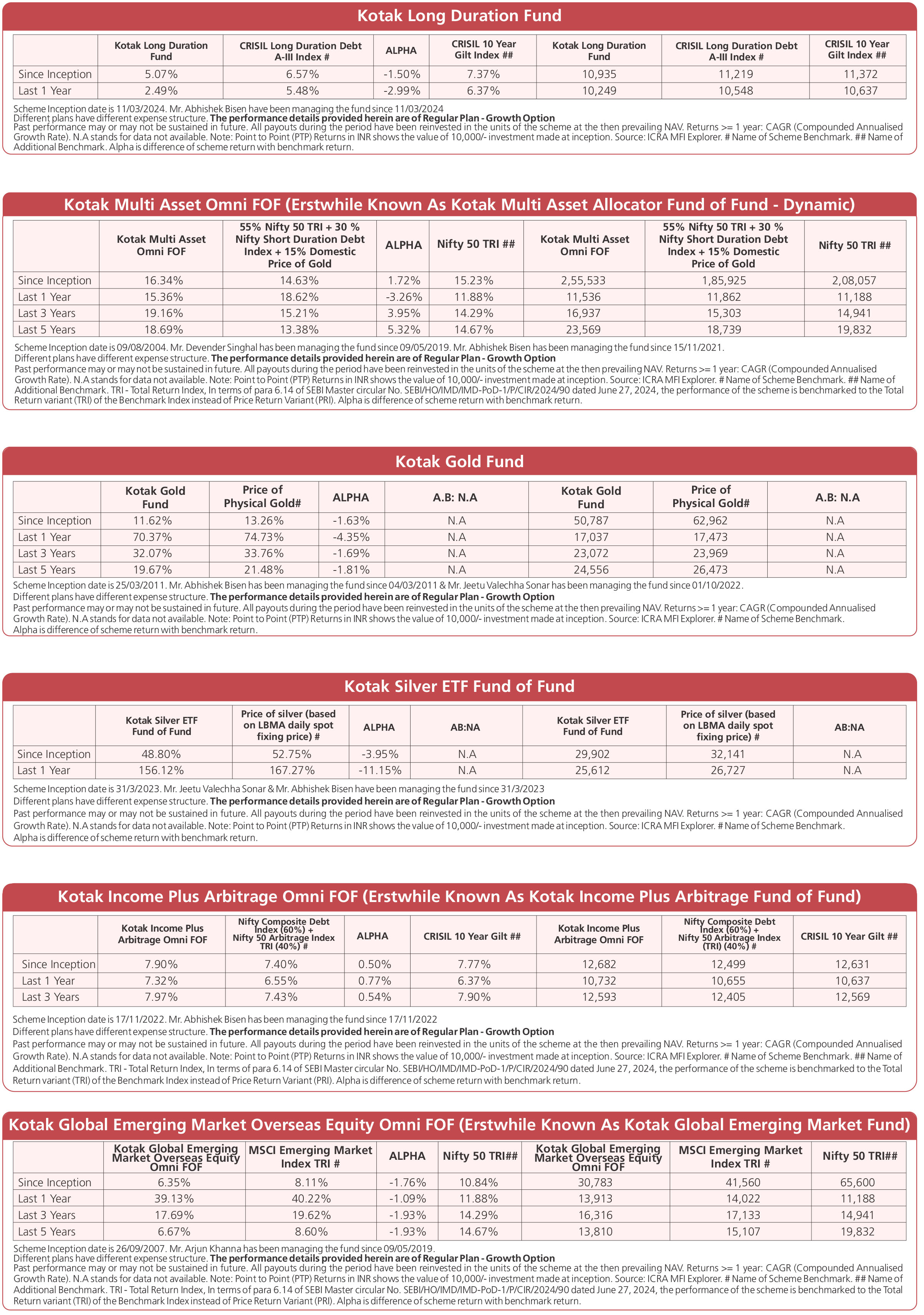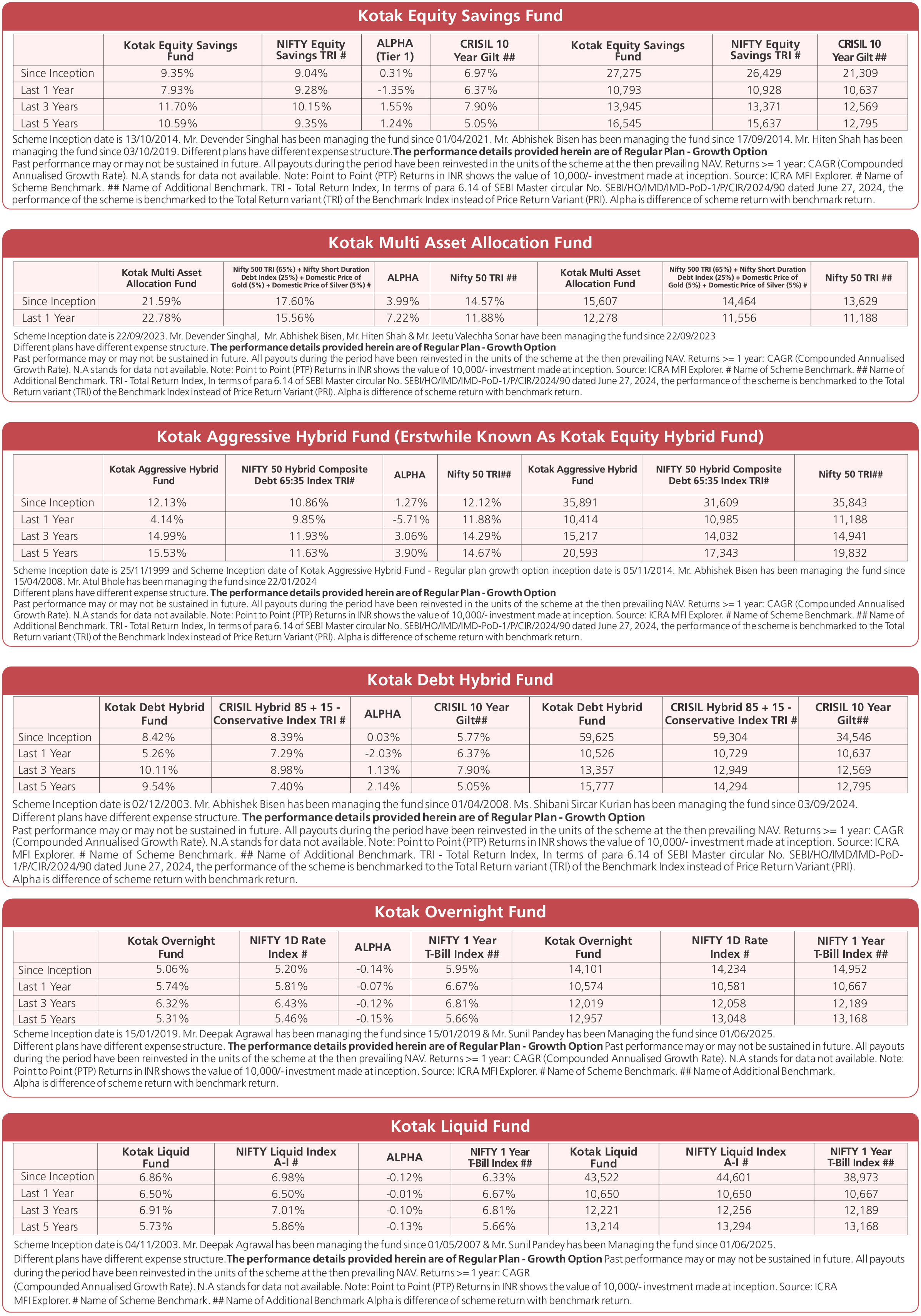 Scheme Performances as on December 31, 2025 (unless otherwise specified)