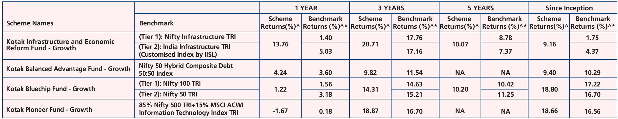 Kotak Infrastructure & Economic Reform Fund (Feb 25, '08), Kotak Pioneer Fund (Oct 31, '19), Kotak Bluechip Fund (Dec 29, ’98), Kotak Balanced Advantage Fund (Aug. 03,’18) & Kotak Manufacture in India