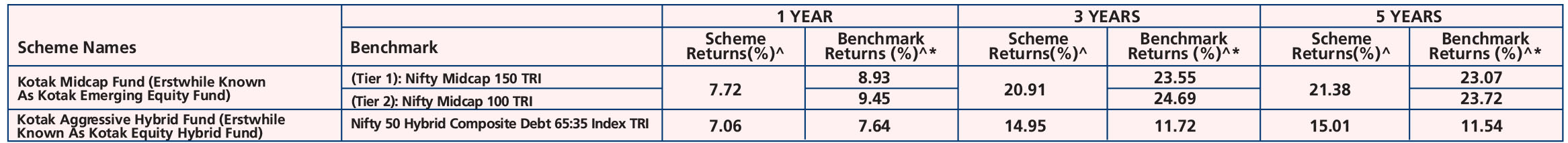 Kotak Midcap Fund (Erstwhile Known As Kotak Emerging Equity Fund) (Mar. 30,'07), Kotak Aggressive Hybrid Fund (Erstwhile Known As Kotak Equity Hybrid Fund) (Nov. 25,'99).