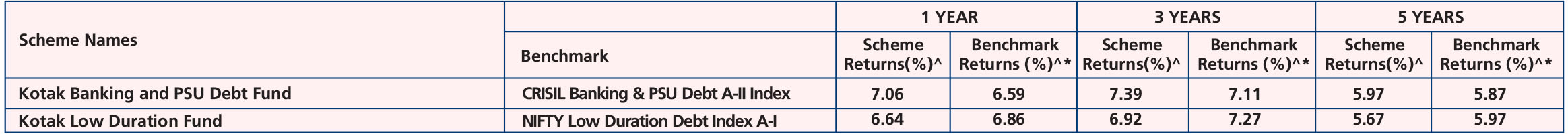 Kotak Banking and PSU Debt Fund (Dec. 29'98) & Kotak Low Duration Fund (Mar. 06'08)