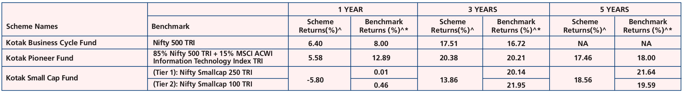 Kotak Smallcap Fund (Feb 24, '05), Kotak Pioneer Fund (Oct 31, '19) & Kotak Business Cycle Fund (Sep 28, ’22).