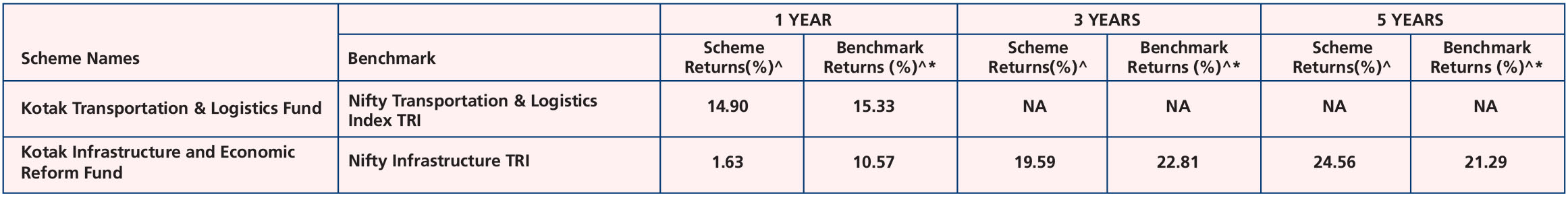 Kotak Infrastructure and Economic Reform Fund (Feb. 25, ’08) & Kotak Transportation & Logistics Fund (Dec. 16, ’24).