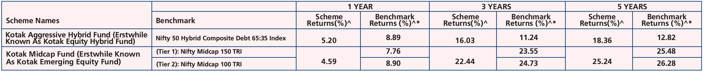 Kotak Midcap Fund (Erstwhile Known As Kotak Emerging Equity Fund) (Mar. 30,'07), Kotak Aggressive Hybrid Fund (Erstwhile Known As Kotak Equity Hybrid Fund) (Nov. 25,'99).