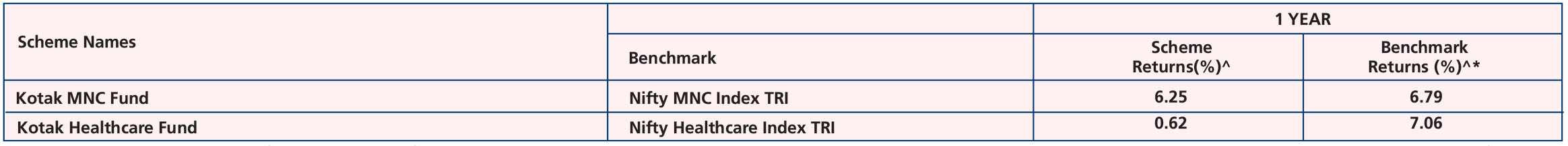 Kotak Healthcare Fund - Growth, *Name of the Benchmark - Nifty Healthcare Index TRI, Scheme Inception date is 11/12/2023. Mr. Abhishek Bisen, Ms. Shibani Sircar Kurian & Mr. Dhananjay Tikariha have been managing the