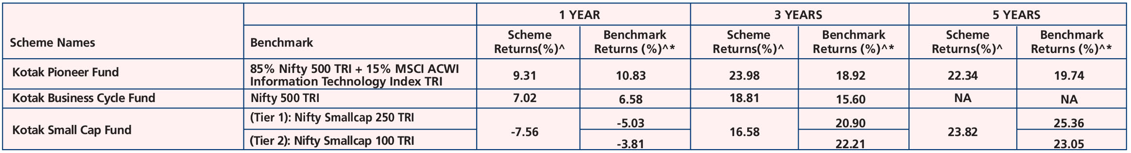Kotak Smallcap Fund (Feb 24, '05), Kotak Pioneer Fund (Oct 31, '19) & Kotak Business Cycle Fund (Sep 28, ’22).