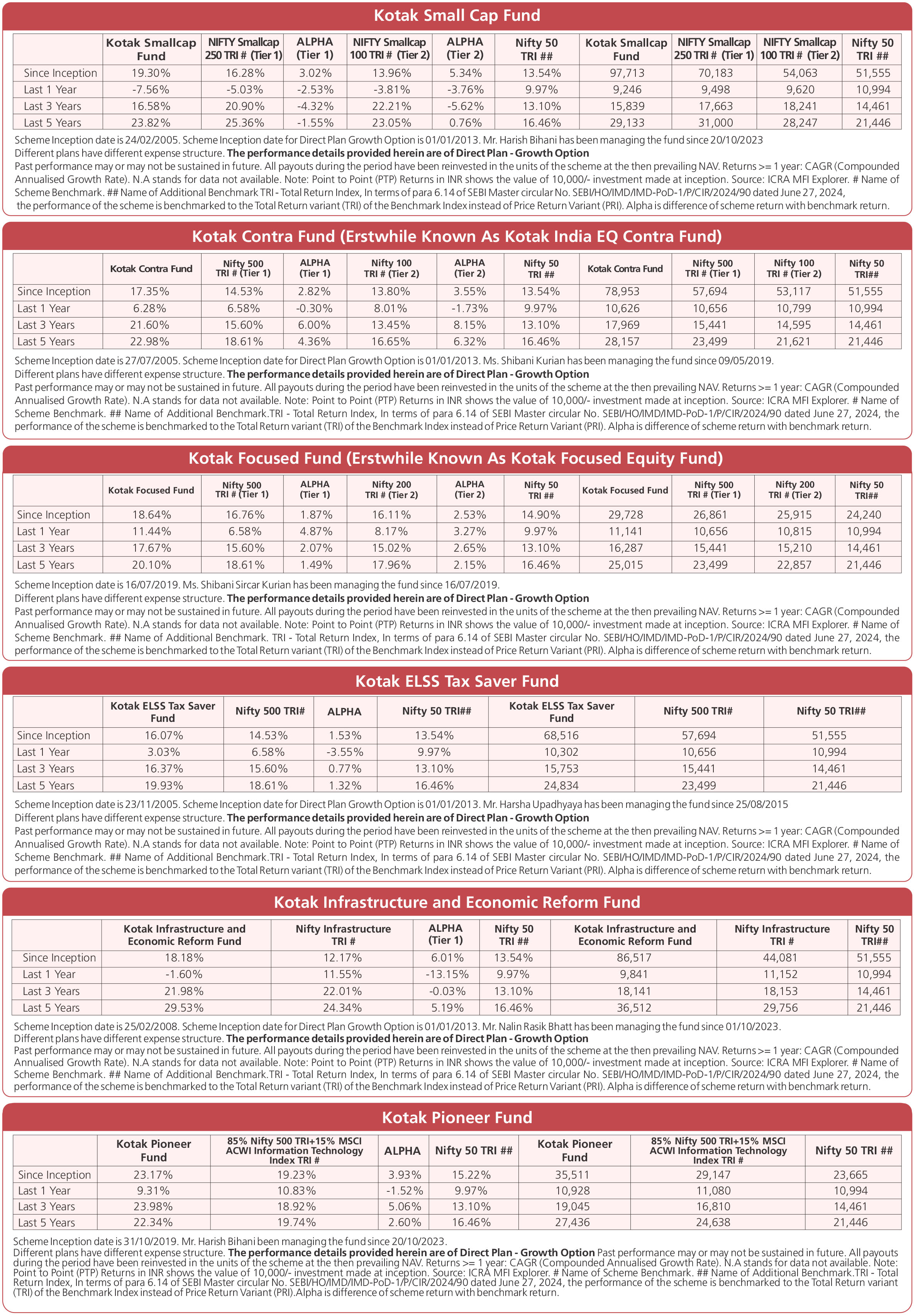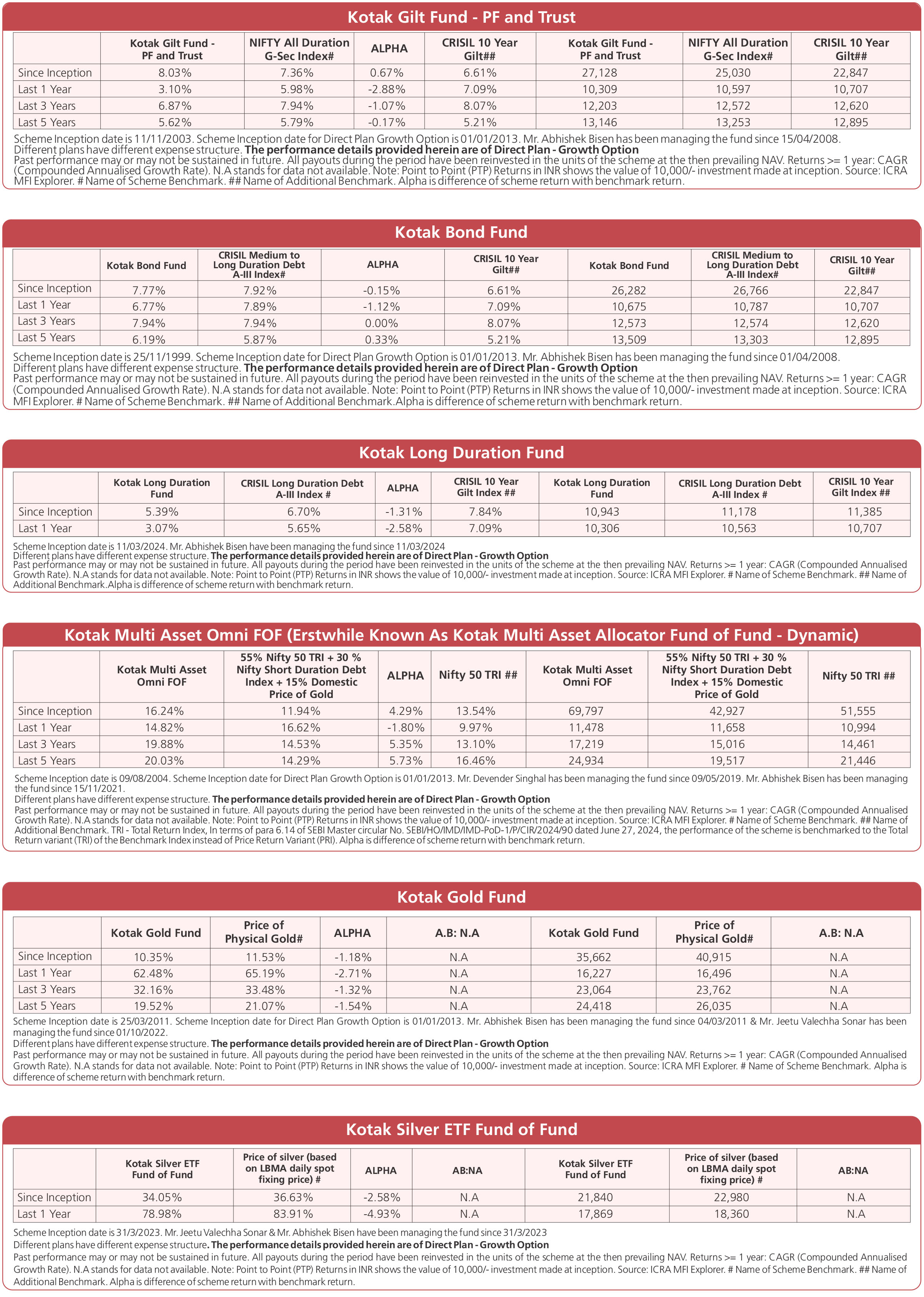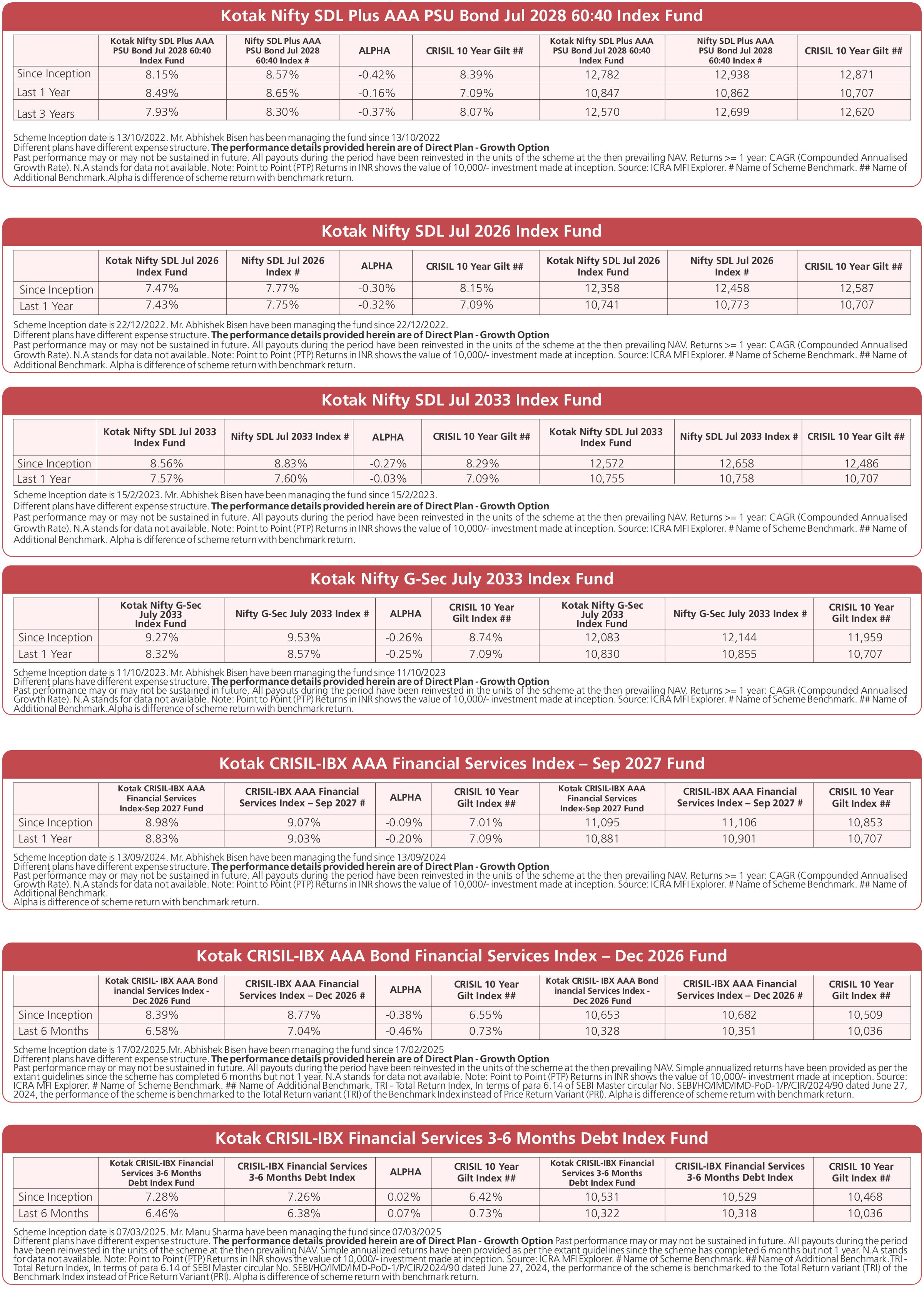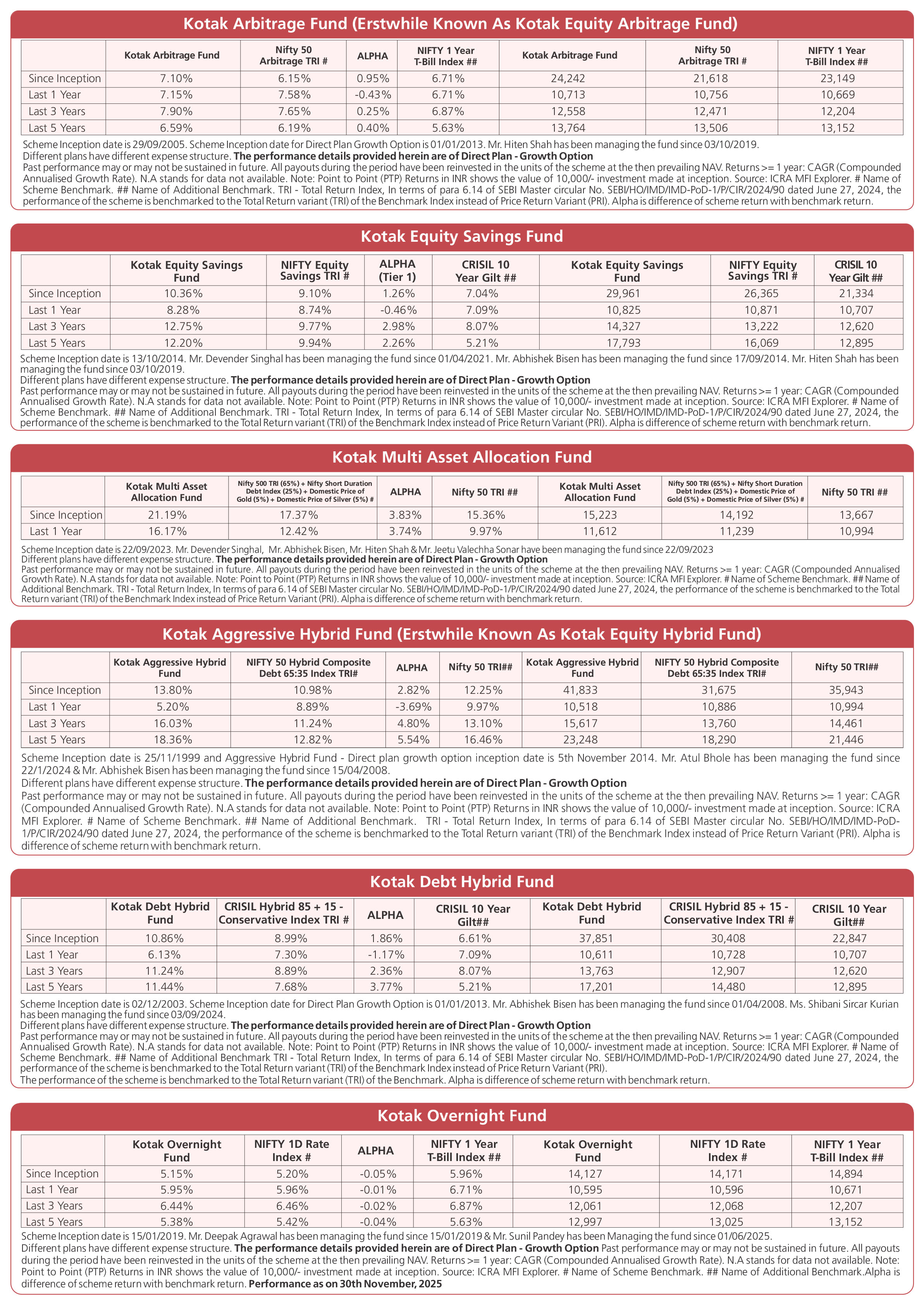 Scheme Performances as on November 28, 2025