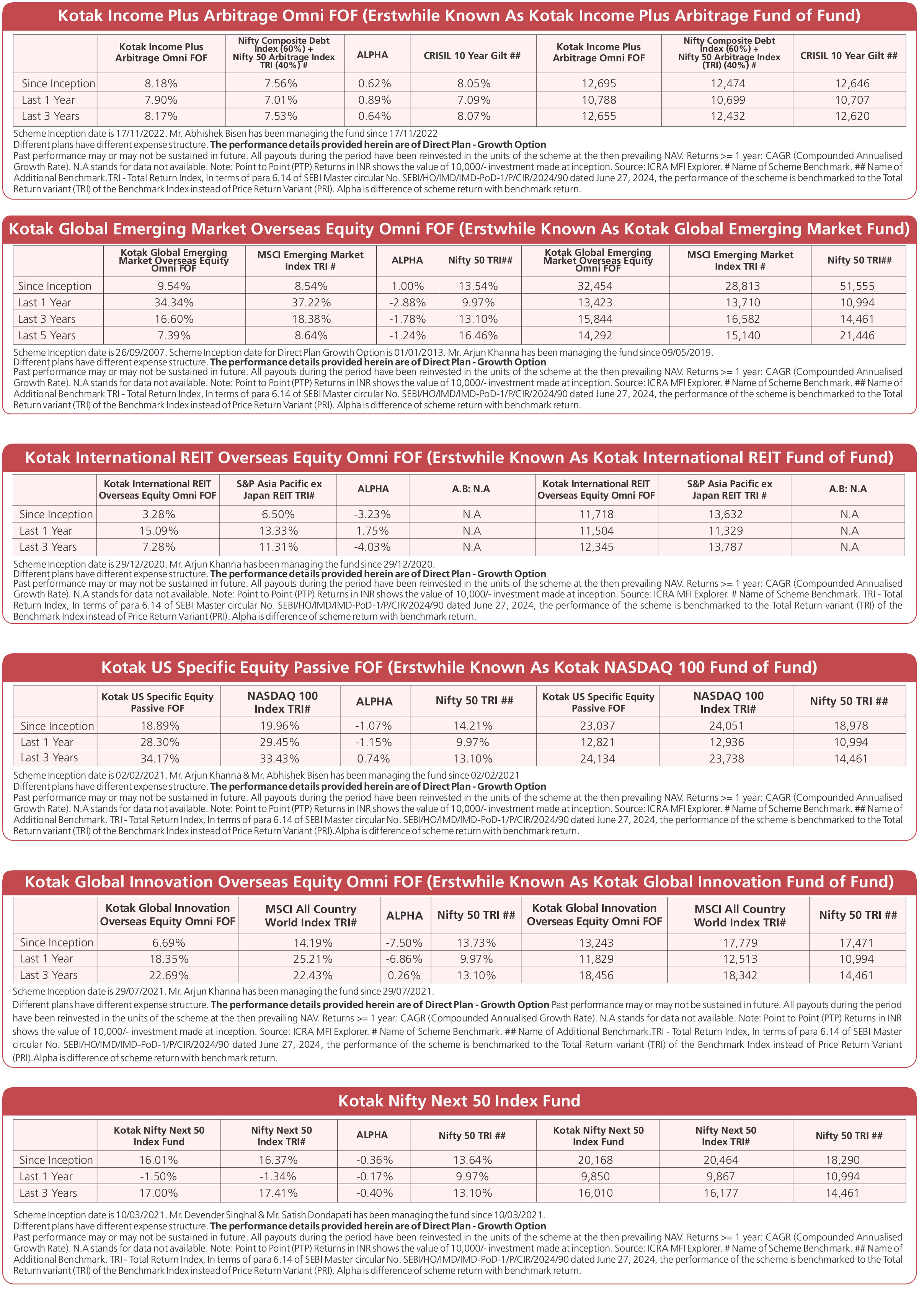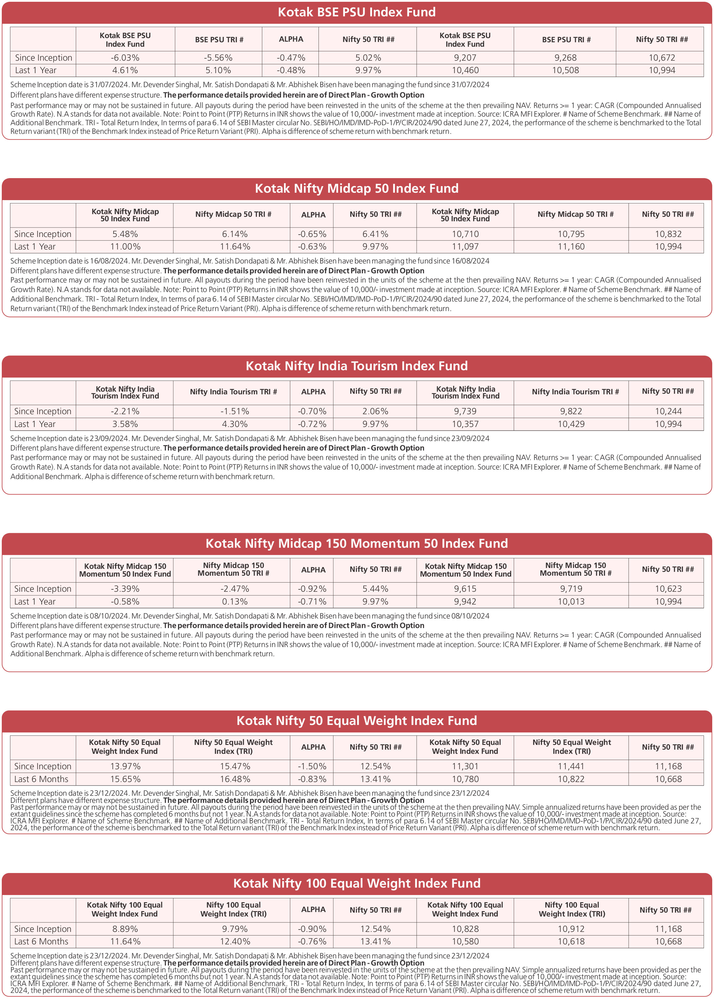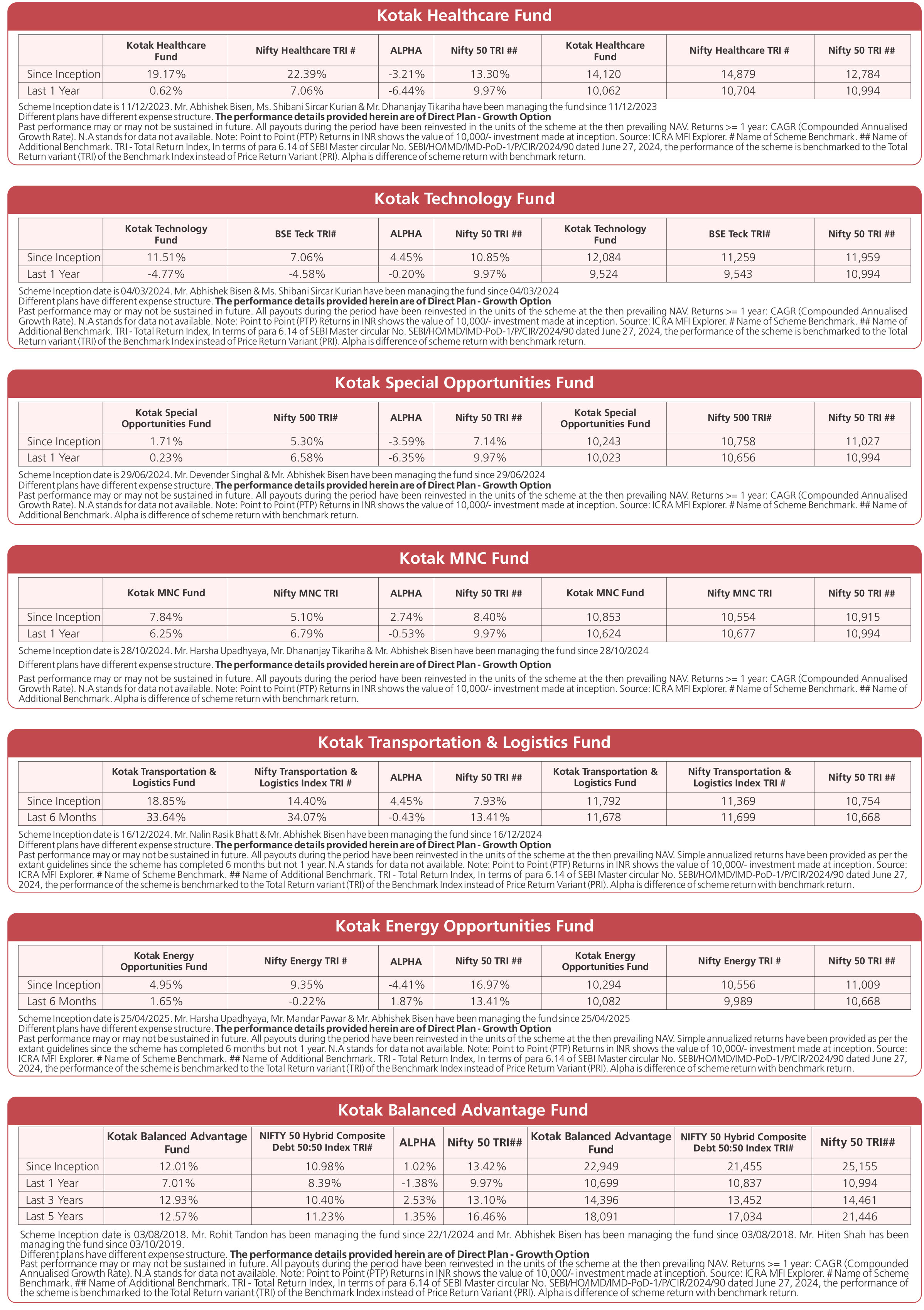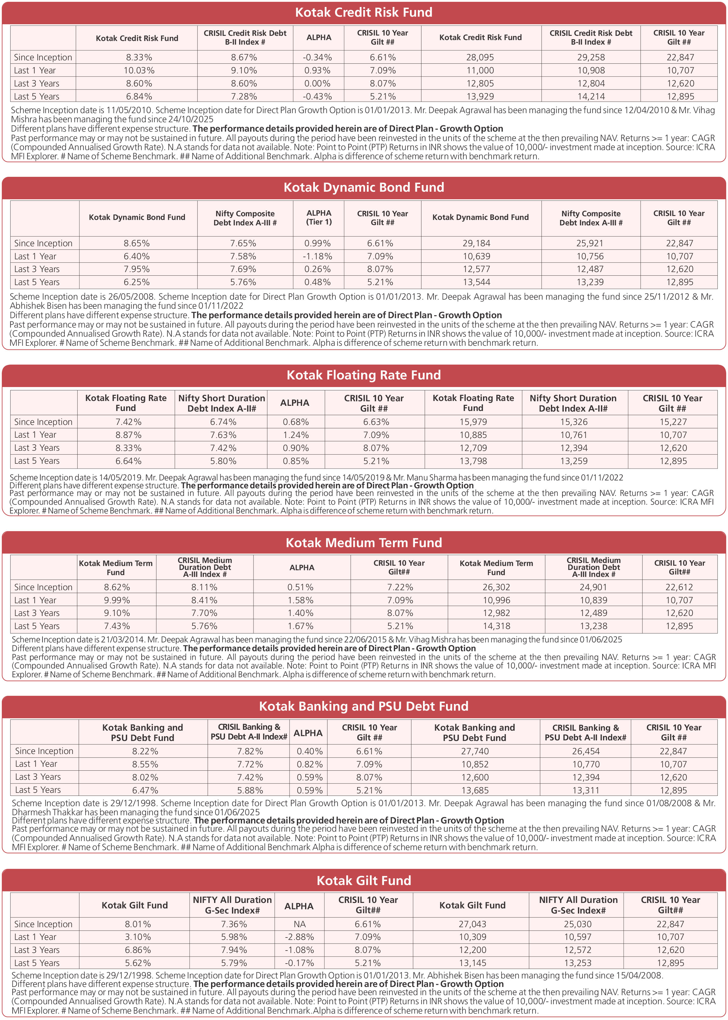 Scheme Performances as on November 28, 2025
