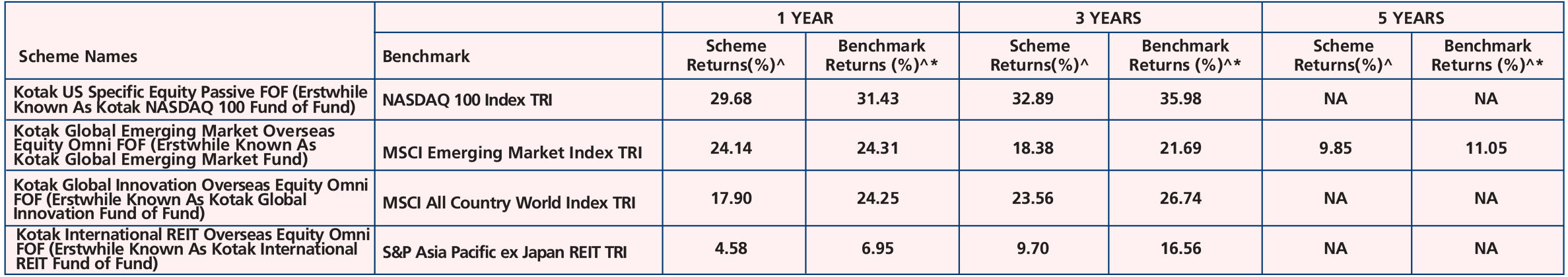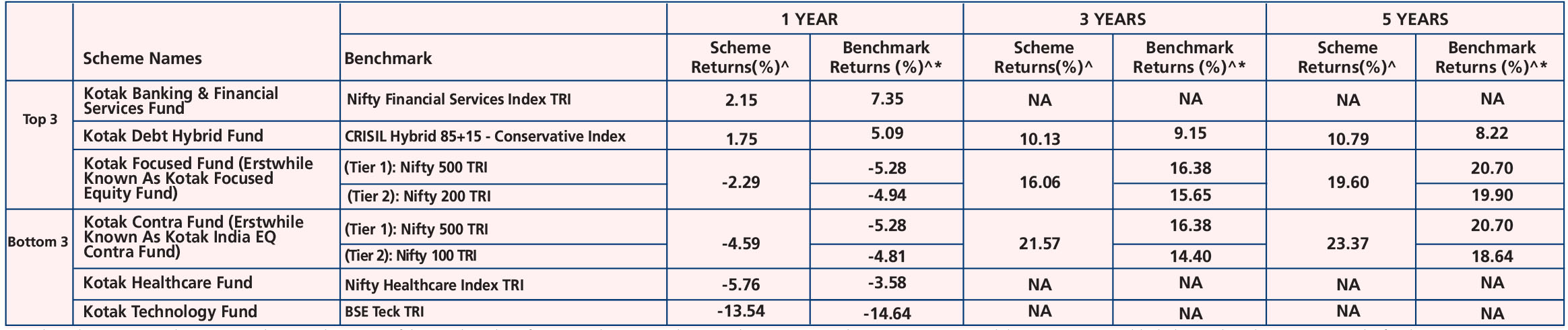 Fund (Dec. 11' 23), Kotak Technology Fund (Mar. 04' 24), Kotak Long Duration Fund (Mar. 11' 24), Kotak Nifty 100 Low Volatility 30 Index Fund (Jun. 07, '24), Kotak Special Opportunities Fund (Jun. 29, ‘24), Kotak BSE PSU Index Fund (Jul.