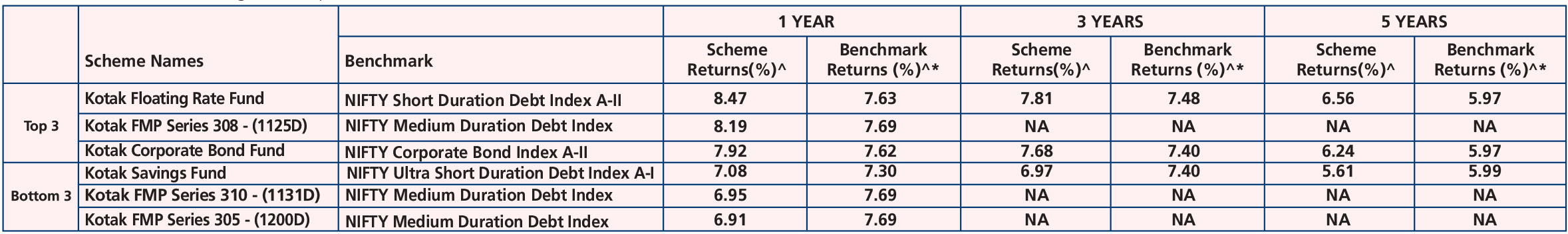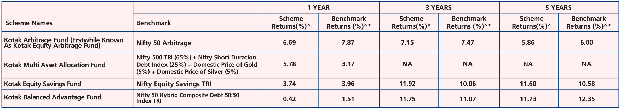 Kotak Aggressive Hybrid Fund (Erstwhile Known As Kotak Equity Hybrid Fund) (Nov. 25, ‘99), Kotak Debt Hybrid Fund (Dec. 02, ‘03), Kotak Bond Fund (Regular Plan) (Nov. 25, ’99), Kotak Gilt Fund (Regular & PF-Trust) (Dec. 29, ’98), Kotak