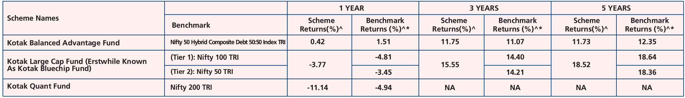Kotak Large Cap Fund (Erstwhile Known As Kotak Bluechip Fund) (Dec. 29,'98), Kotak Balanced Advantage Fund (Aug. 3,'18),Kotak Quant Fund (Aug. 2,'23) & Kotak Active Momentum Fund (Aug.