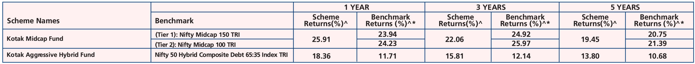 Kotak Midcap Fund (Mar. 30,'07), Kotak Aggressive Hybrid Fund (Nov. 25,'99).