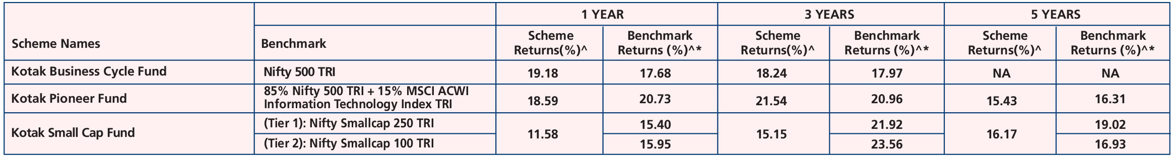 Kotak Smallcap Fund (Feb 24, '05), Kotak Pioneer Fund (Oct 31, '19) & Kotak Business Cycle Fund (Sep 28, ’22).