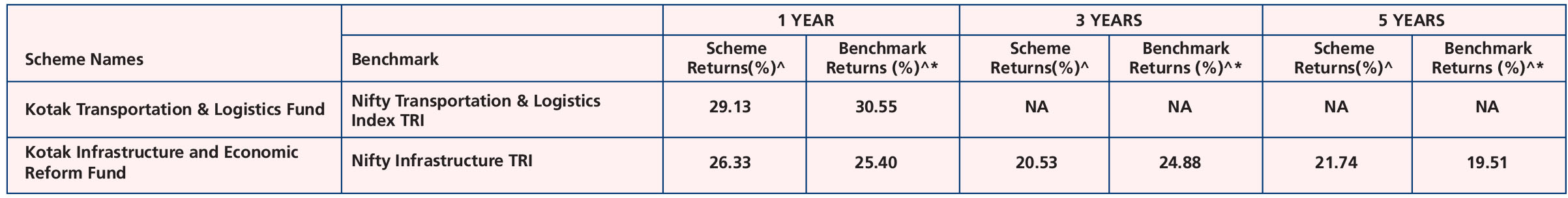 Kotak Infrastructure and Economic Reform Fund (Feb. 25, ’08) & Kotak Transportation & Logistics Fund (Dec. 16, ’24).