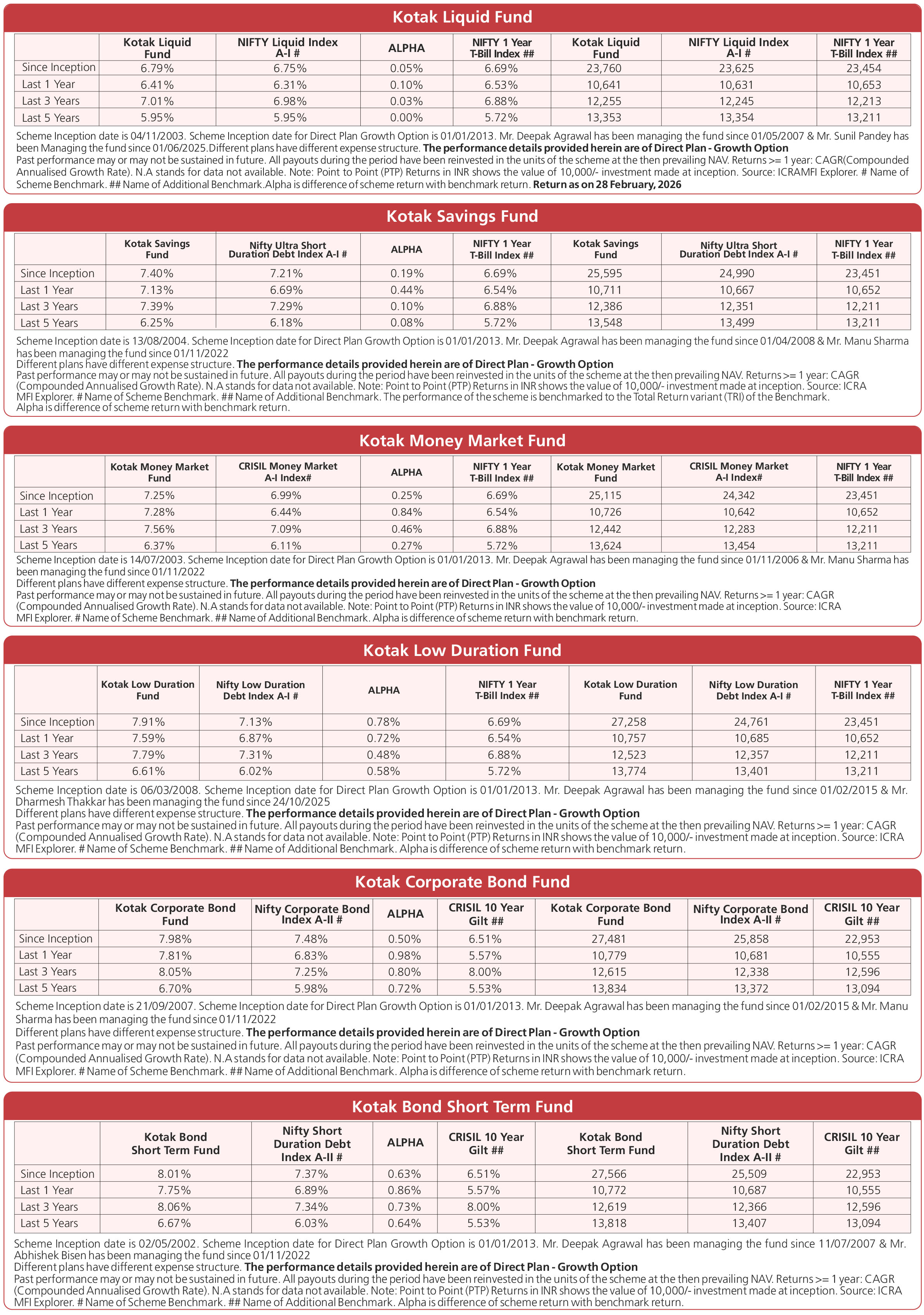 Scheme Performances as on February 27, 2026 (unless otherwise specified)