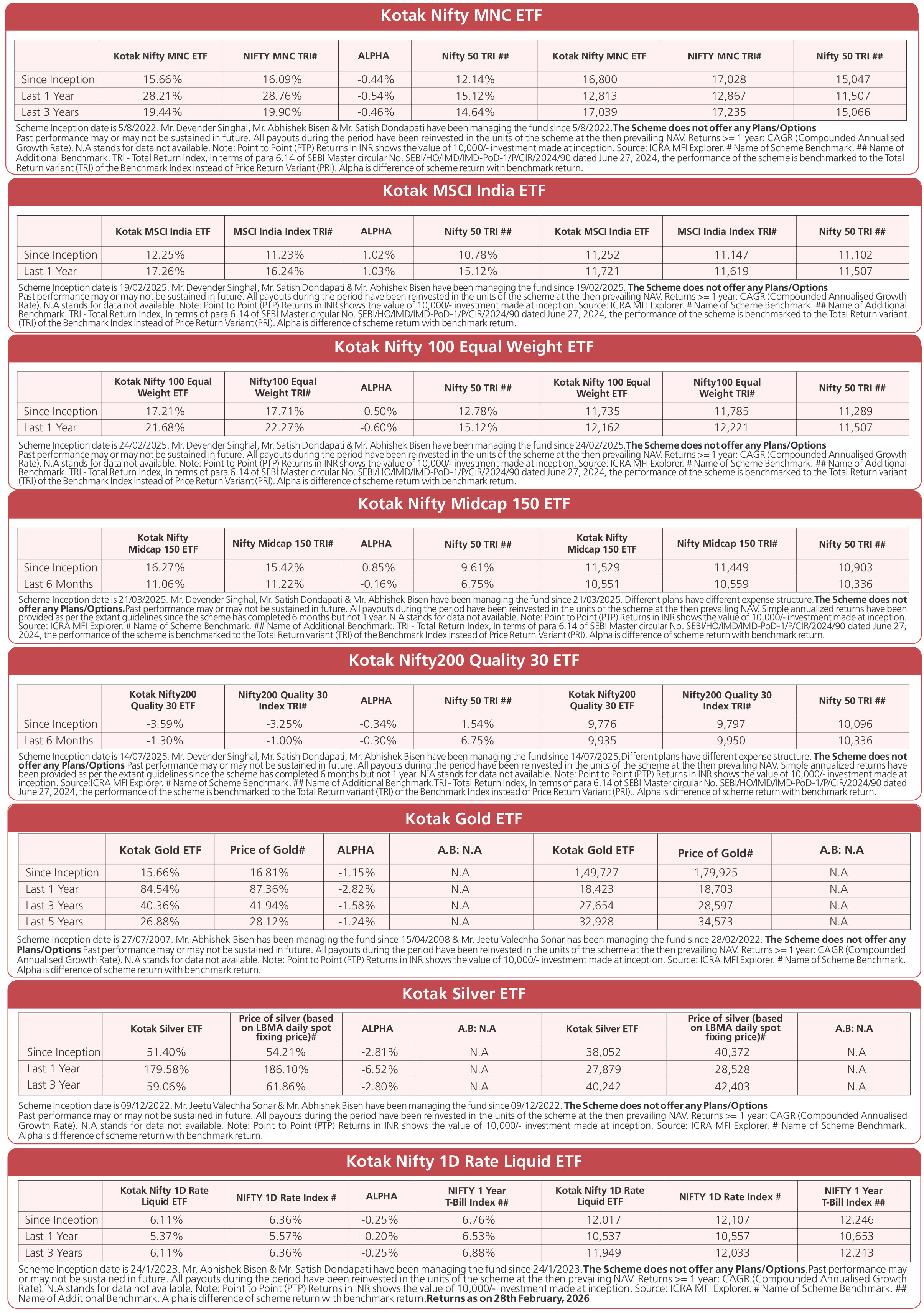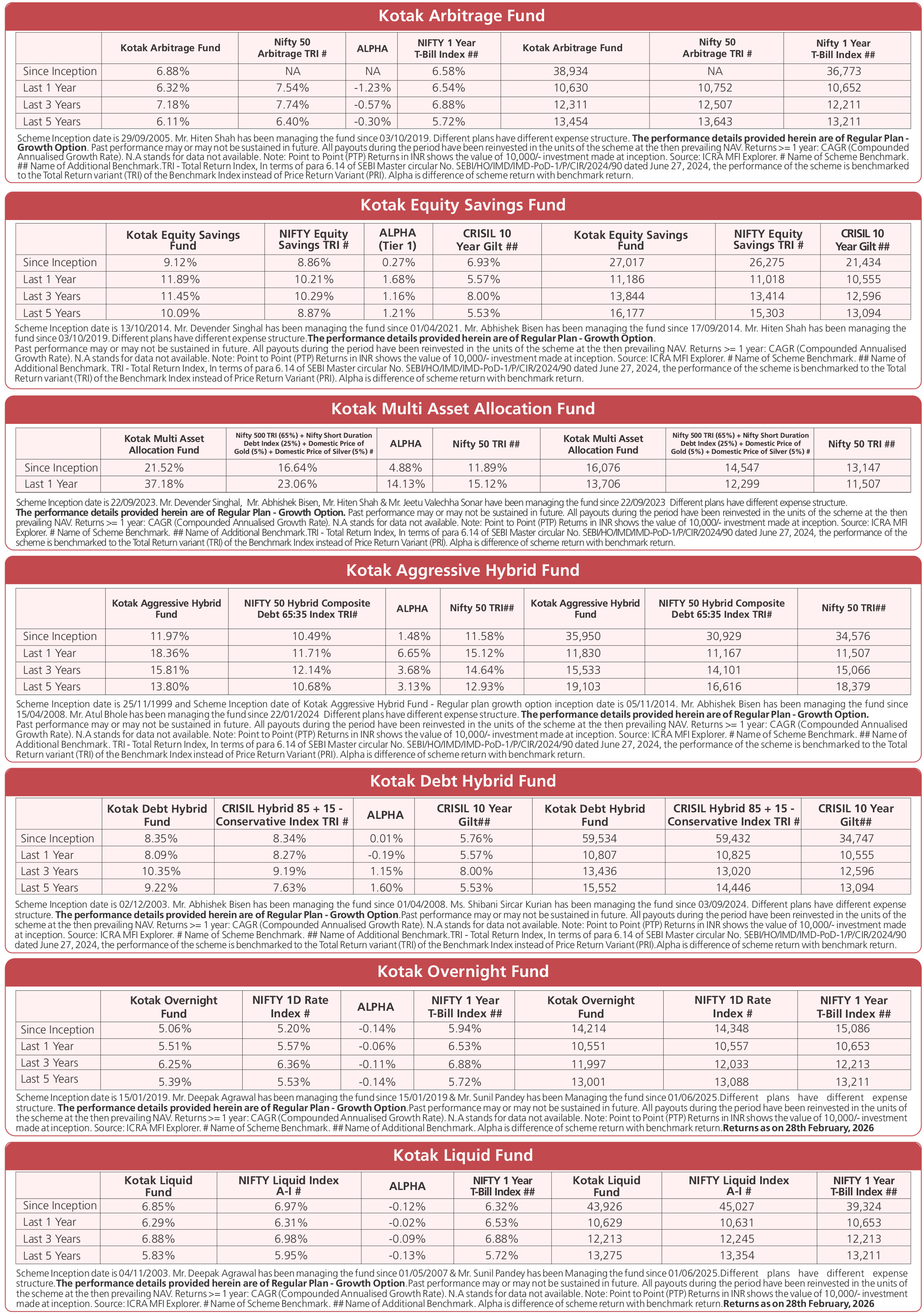 Scheme Performances as on February 27, 2026