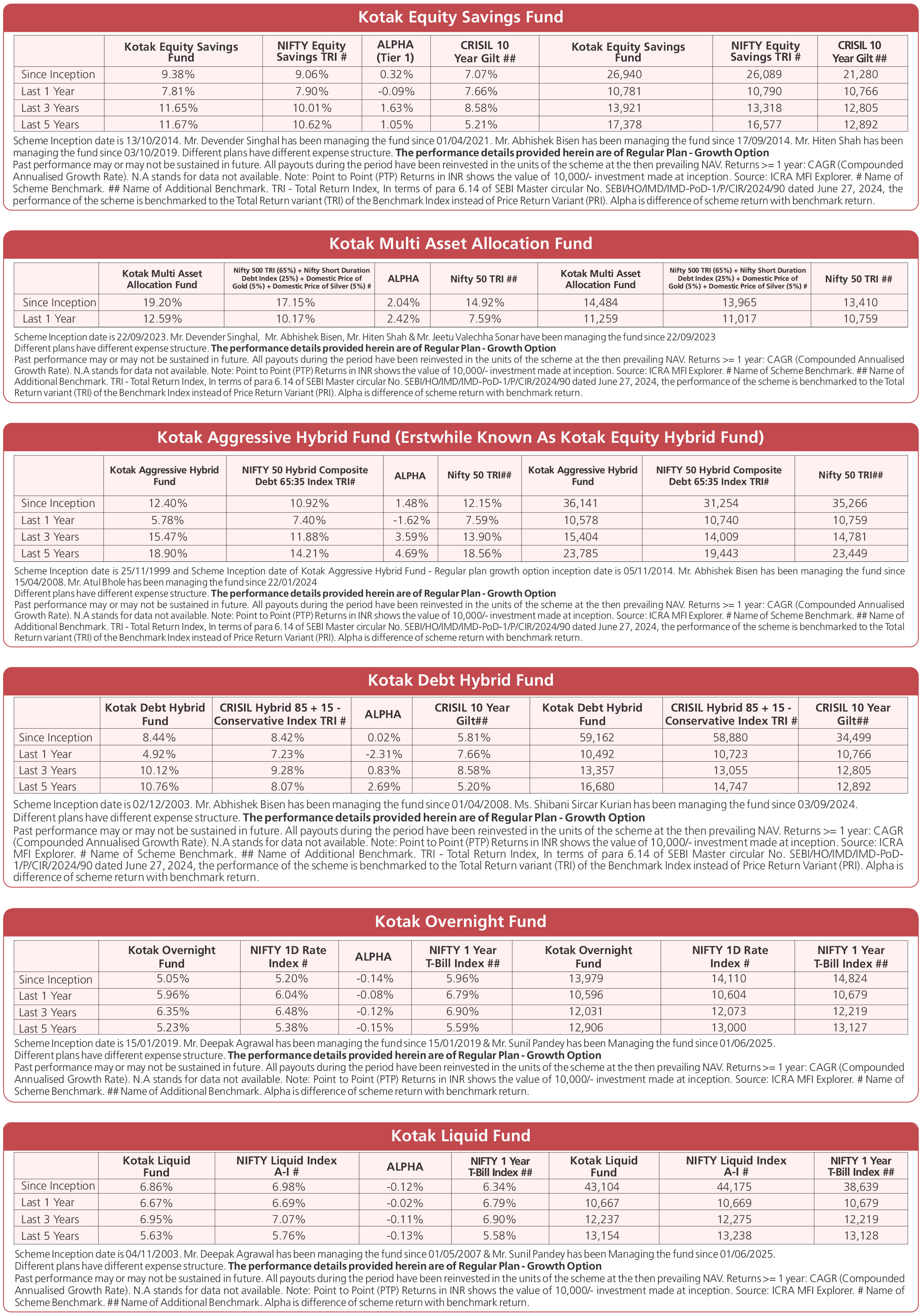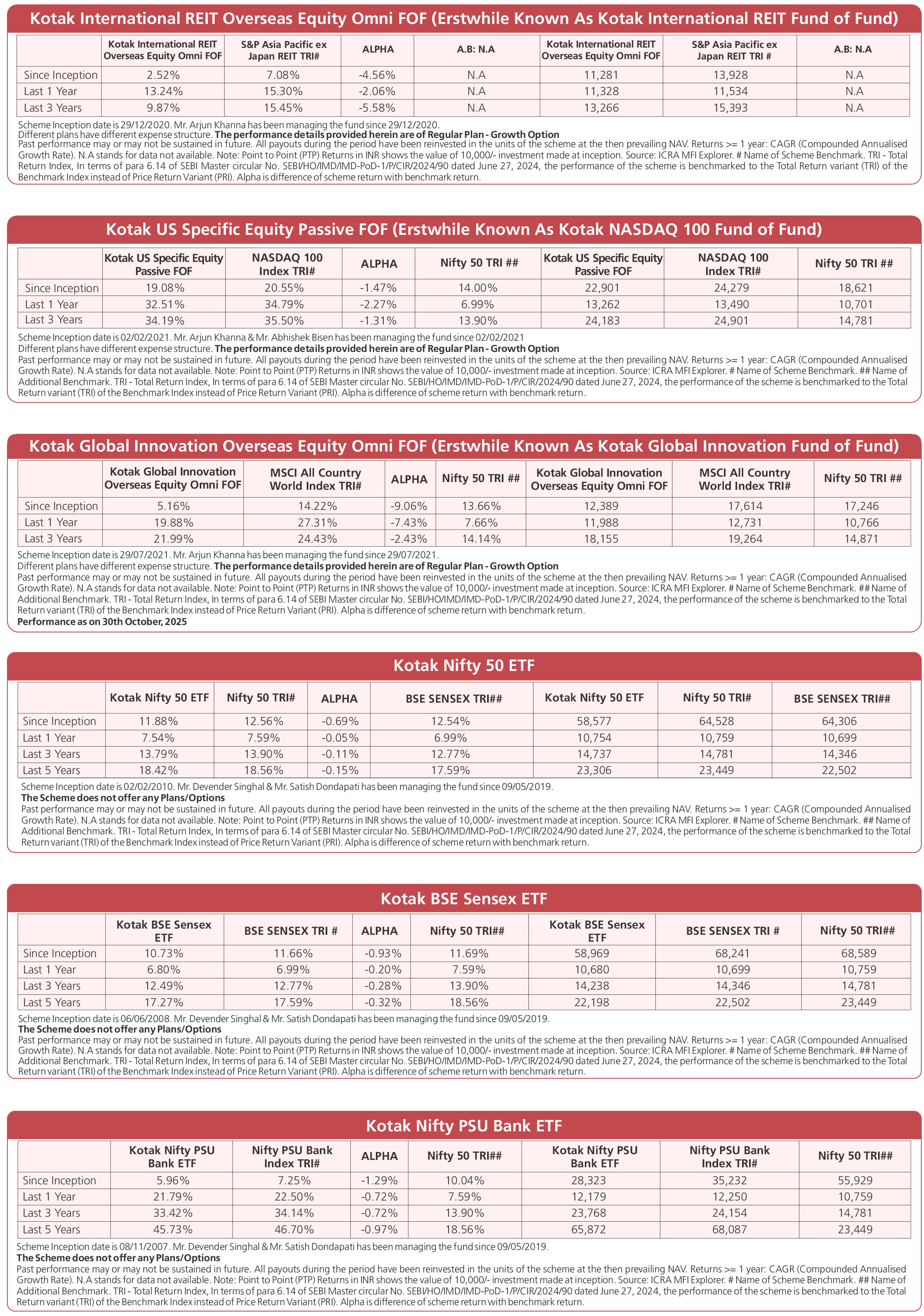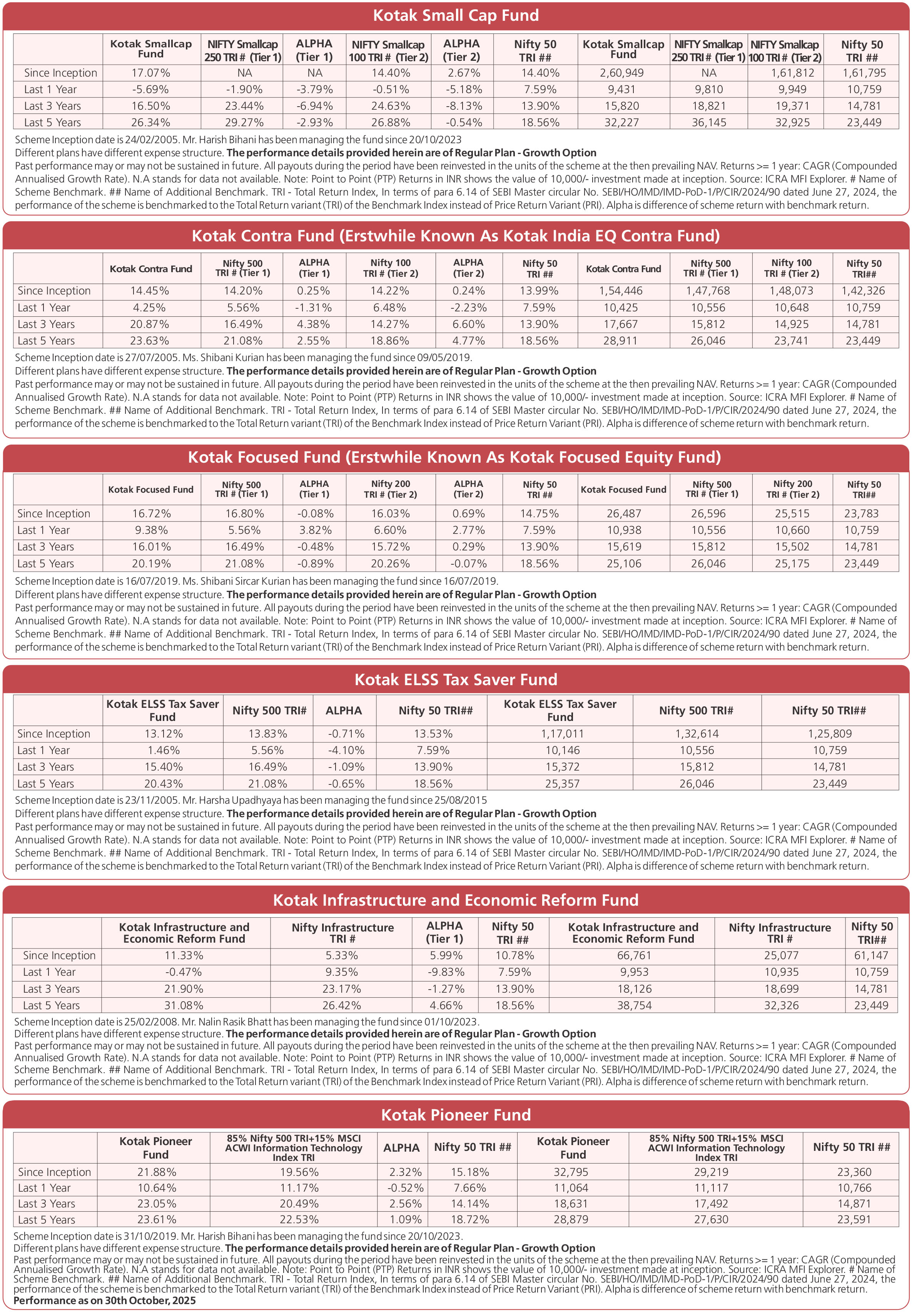 Scheme Performances as on October 31, 2025 (unless otherwise specified)