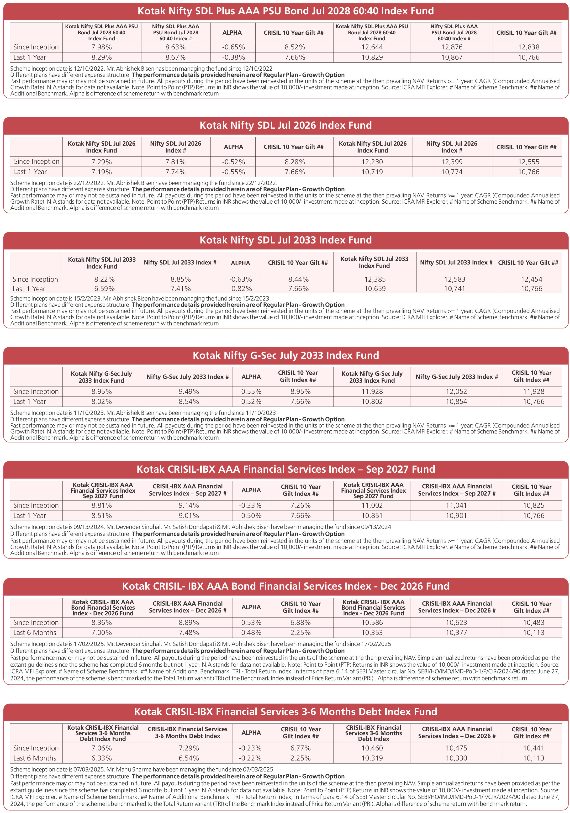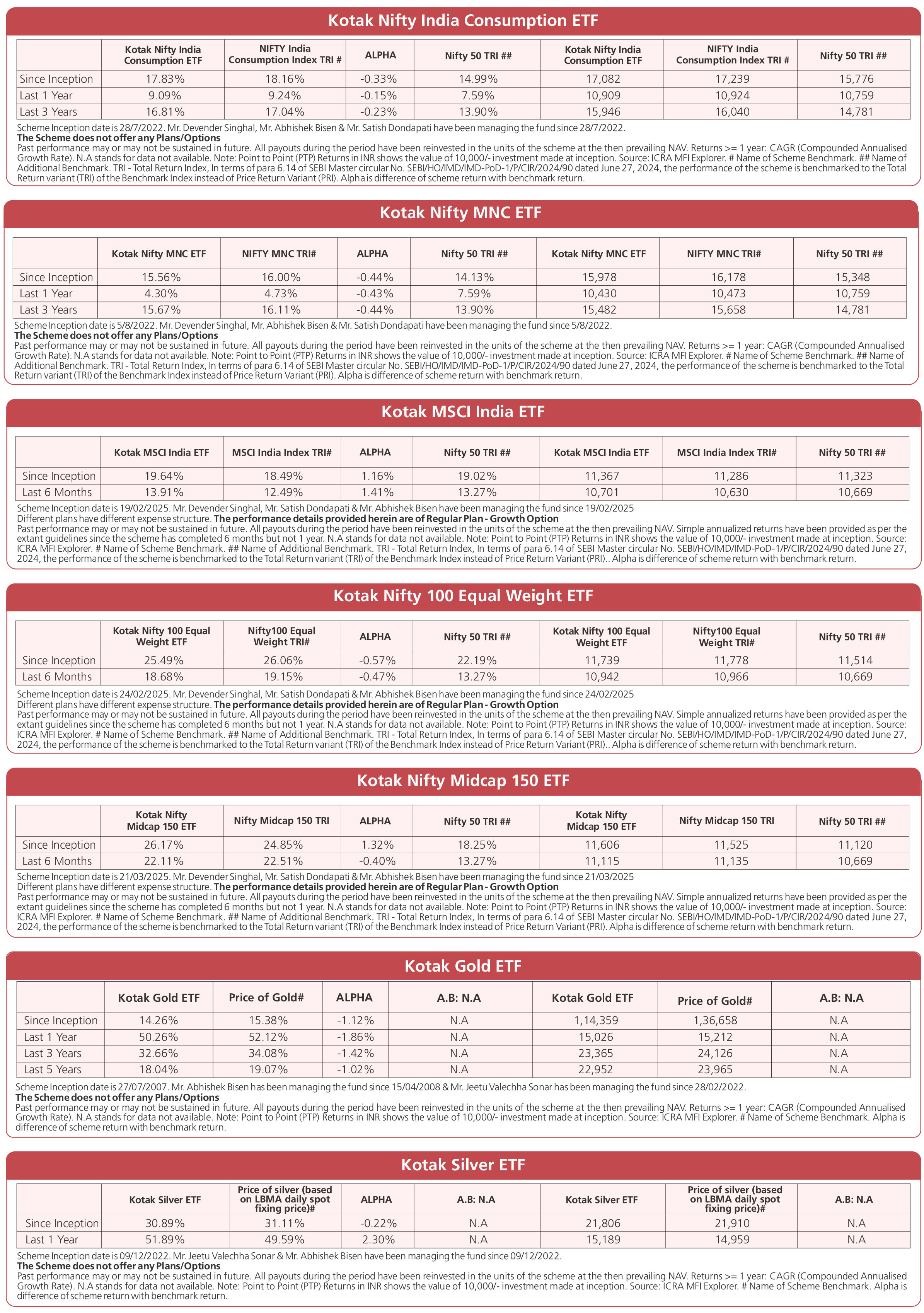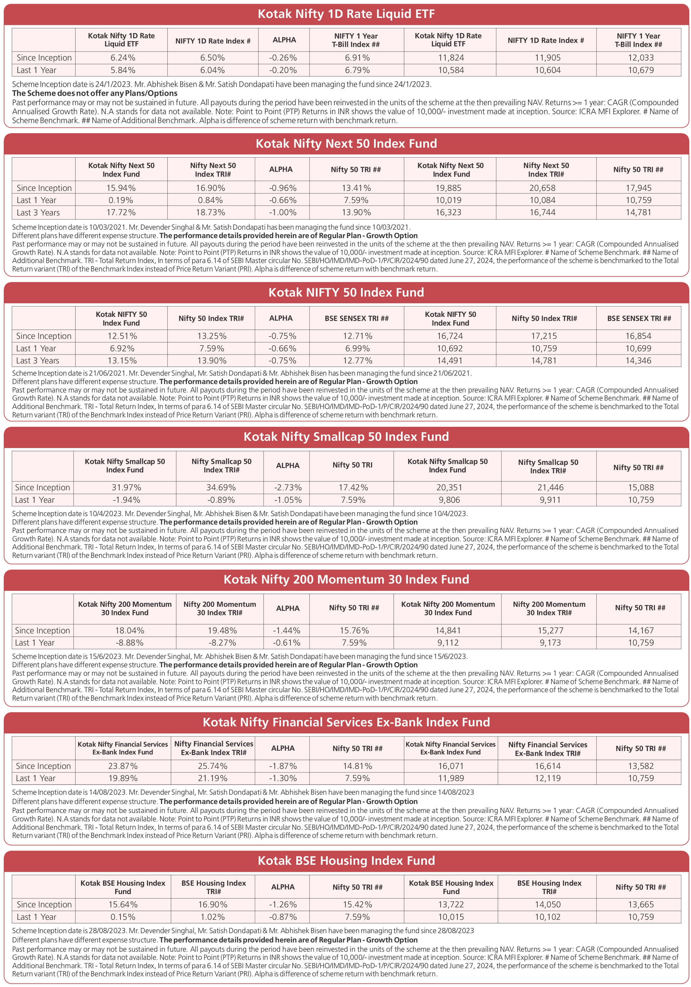 Scheme Performances as on October 31, 2025 (unless otherwise specified)